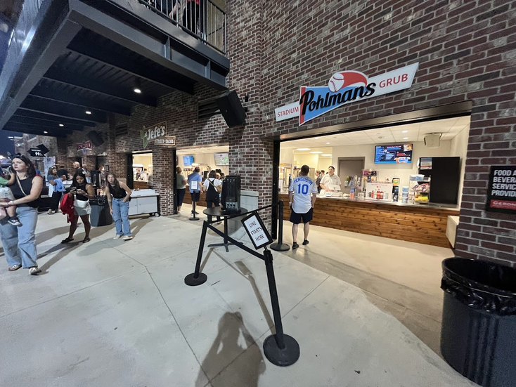 場內有三間食物販賣部,球場食物熱狗、漢堡、爆米花、烤雞等都有供應。熱狗特別在於全部都浸泡在酒裡面醃漬再烤,有啤酒花香氣。也有賣烤馬鈴薯淋上起司、酸奶、培根和蔥花。