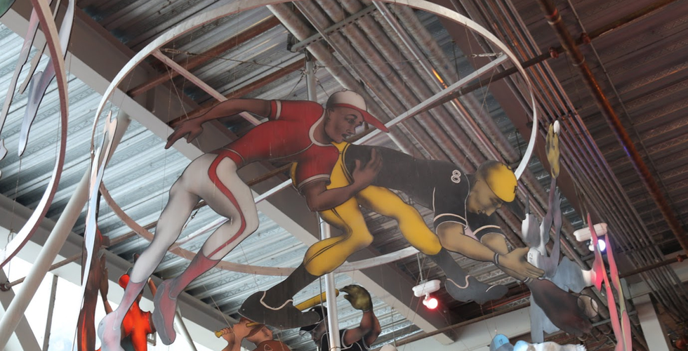 一壘側大廳的屋頂上懸吊了一個由眾多棒球選手組成的藝術作品 「The Ball Game」是由當地藝術家 Walter Kravitz 所設計的。據說一開始它還能發出聲音會播放棒球界名曲「 Take Me Out to the Ball Game」只不過我去的時候並沒有聽到歌曲。